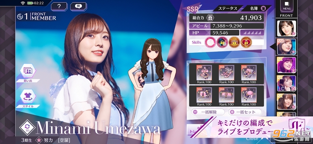 您可以改变成员的服装风格!包括大量的服装,包括现场表演、制服服装和乃木坂 46 球衣!让我们充分利用通过更换鞋子和麦克风来提高吸引力的协调性,并继续发挥制作现场的优势!