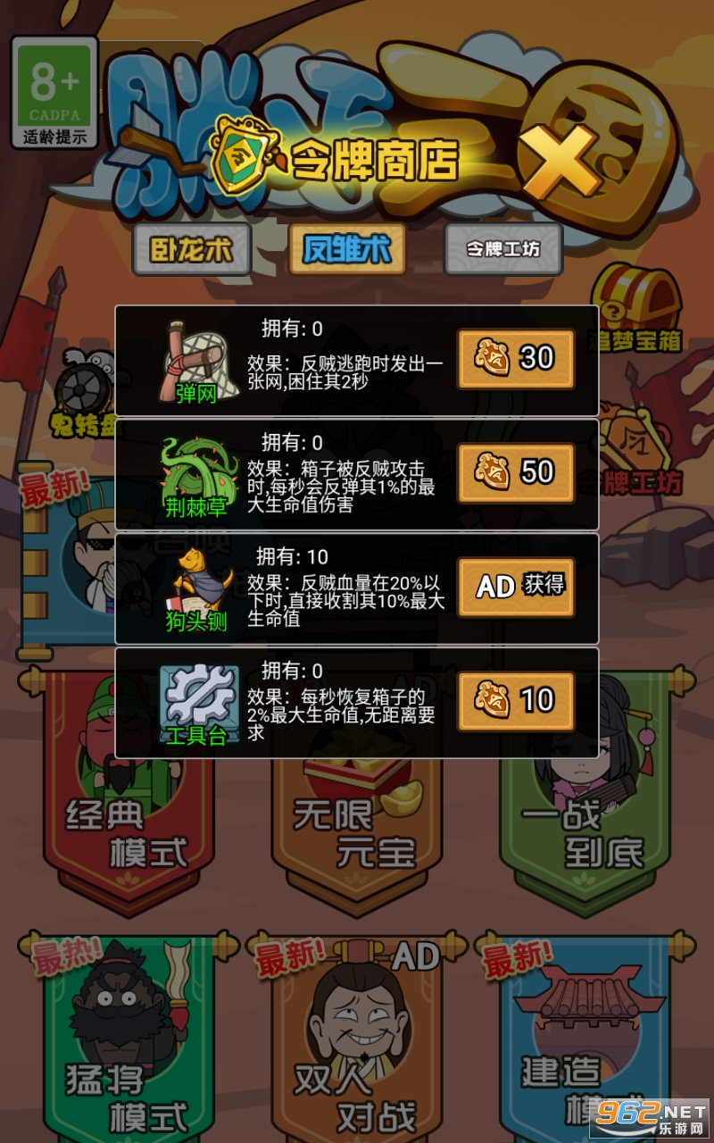 躺平三国是一款策略塔防游戏。忠臣大战反贼三百回合!在房间中我们要对抗的是可怕的反贼,各种不同的模式让这款游戏拥有了更多的趣味,不同模式带来的挑战变化让玩家可以享受更多不一样的塔防精彩挑战,趣味召唤卧龙,你做好准备挑战了吗?