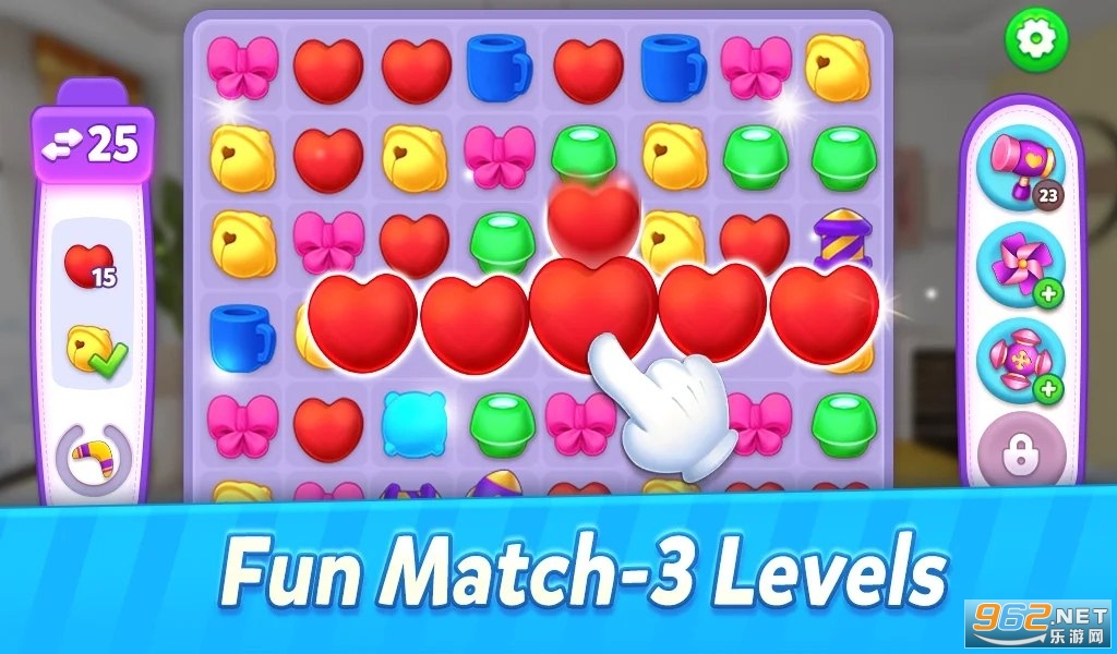 《家居设计梦之屋设计师》是一款清新卡通风格的休闲模拟游戏,游戏中玩家将成为专业的房屋设计师,你将通过一个个有趣的三消关卡完成挑战,选着不同的装修饰品,游戏的操作简单容易上手,赶快下载体验吧!