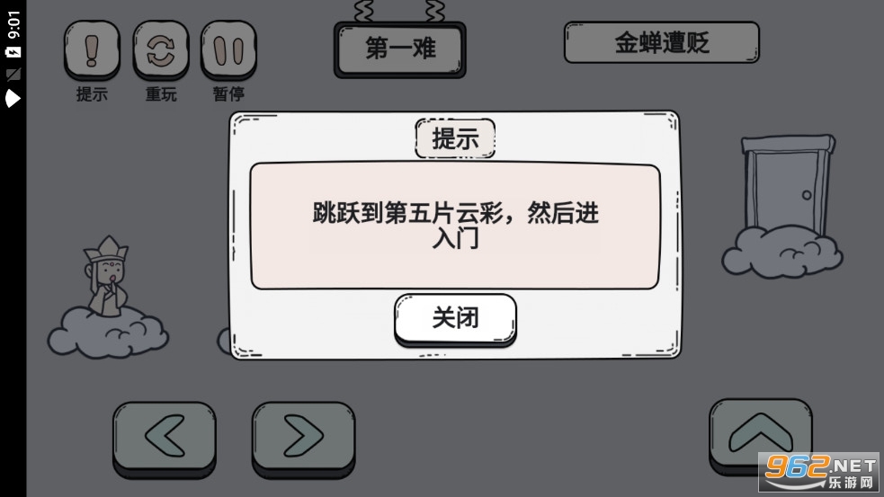 《脑洞西游》是一款采用黑白画风的魔性闯关手游,游戏以西游记为题材,加入来的众多脑洞大开的关卡,玩家需要找准正确的方法来进行闯关,当然也可以点击左上角的提示来获得提示,比如第一关需要跳到第五个云朵上面,第二关需要撞击第二个方块等等。