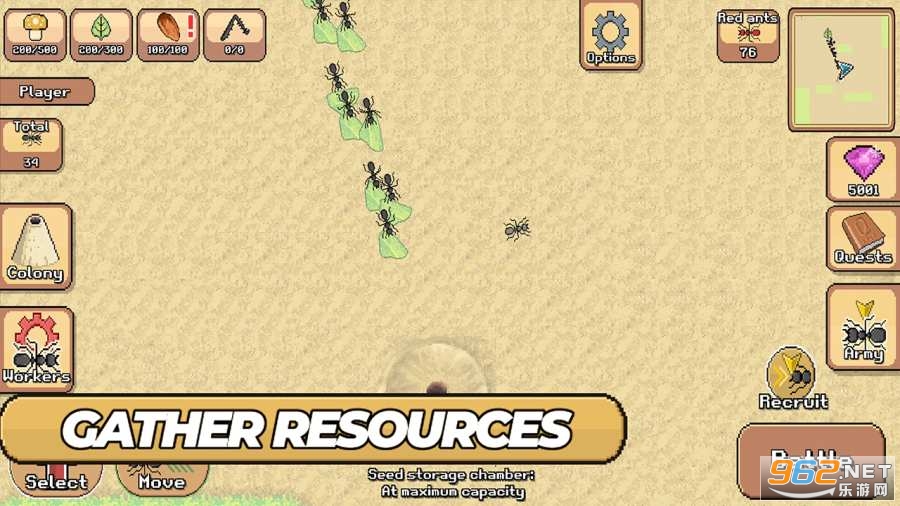 你需要对抗各种外来敌人,比如蜘蛛、大黄蜂、甲虫等等,你需要召集你的蚂蚁群落对其发动攻击。