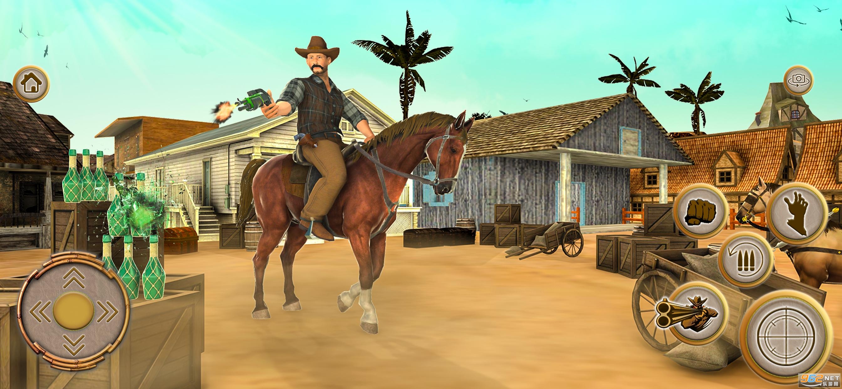 《狂野西部牛仔枪手游戏》是一款西部牛仔为背景的射击游戏,玩家变身西部牛仔造型的枪手,去射击敌人,强盗手中救出平民,可以通过瞄准瓶子来提高你的射击准确度,感兴趣的来下载吧。