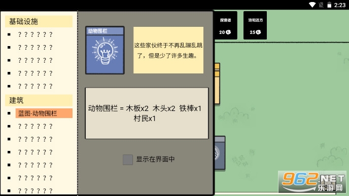 首先你必须至少有两名及以上的村民帮助你完成村庄的建设,包括矿产的开场、木材资源的获取以及食物的制作都是需要他们的技术,而你要做的就是根据勾选出来的蓝图去完成整个过程的合成,帮助你快速得到更好的发展。