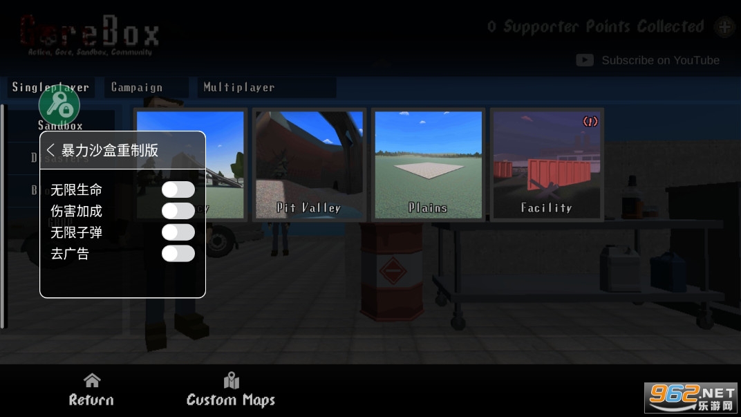 趣味的3D像素沙盒游戏,自由度高,玩家可以前往各个场景去冒险,有着多种武器可以使用,小编带来的是暴力沙盒重制版破解版,内置中文作弊菜单,可以自由开启,喜欢的朋友可以下载试试。