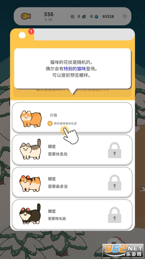 通过放置和超简单操作,可以轻松养育村庄,并能见到各种各样的猫咪。