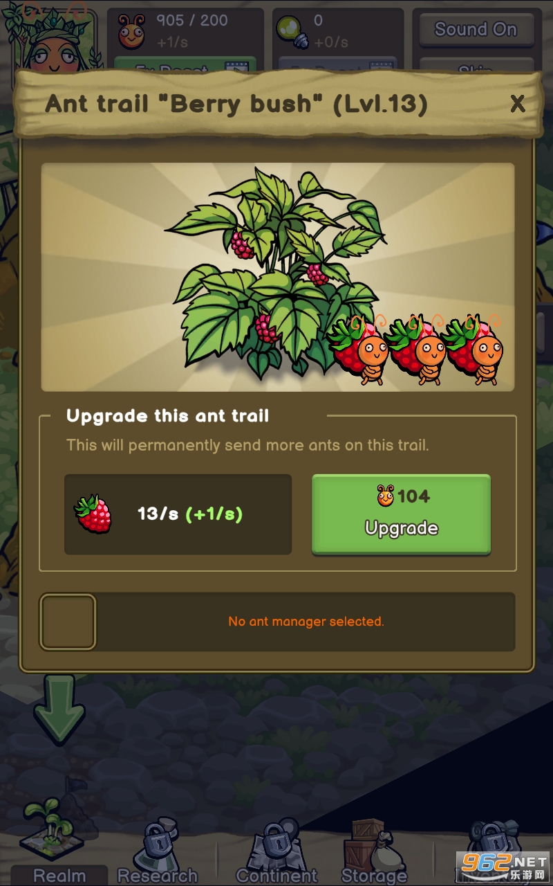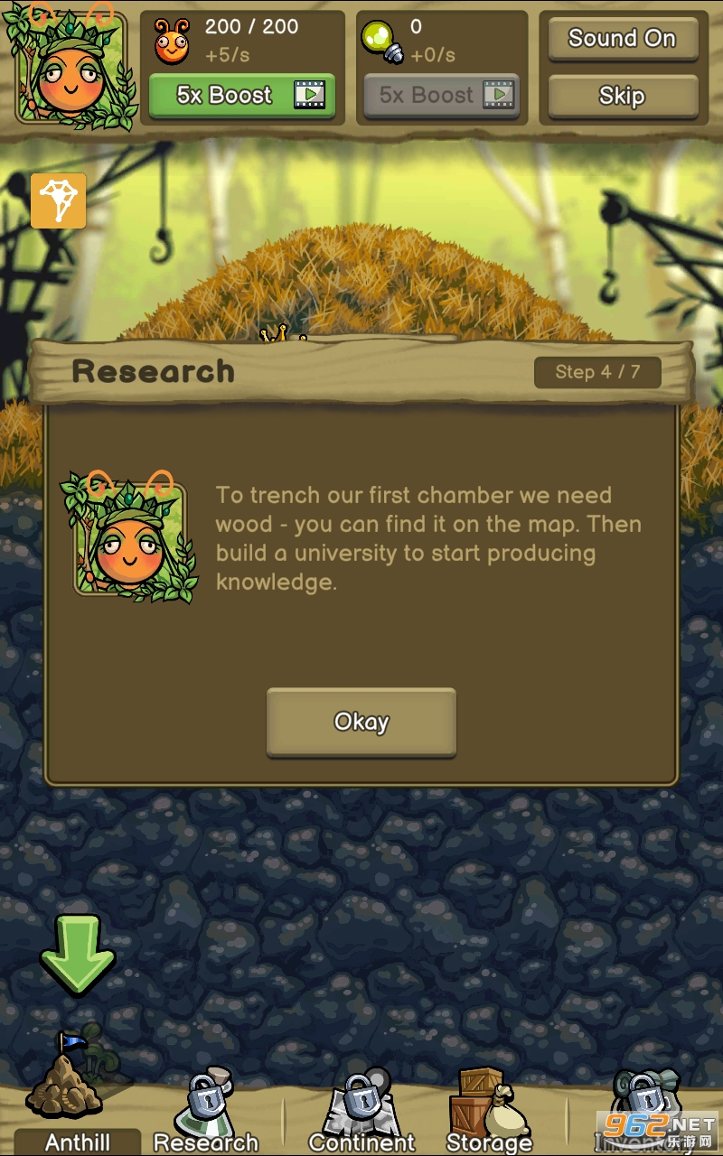 慢慢玩并最大化你的第一个蚁丘。现在安装闲置的蚁群