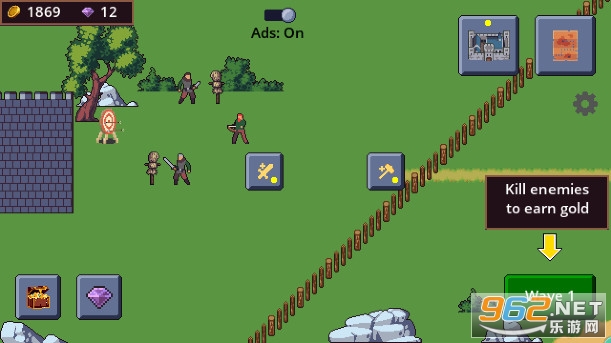 2、在墙上放置熟练的弓箭手和可怕的弩炮,使用你的铁匠获得更好的剑和盔甲