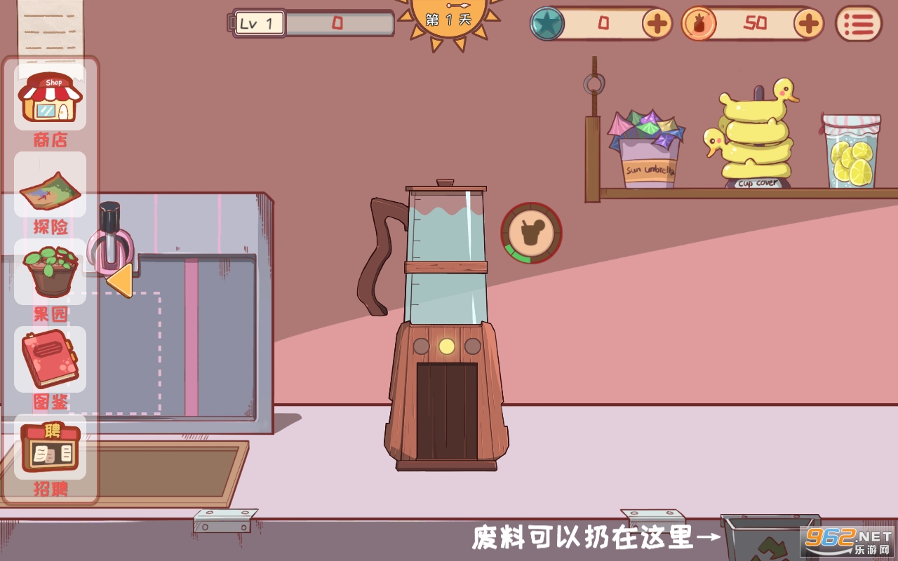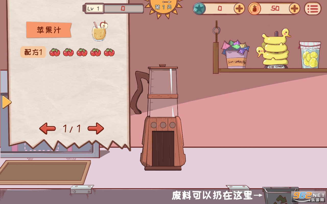 2、玩家能够选择各种不同的方式来讲水果进行加工,利用榨汁机来制作出一杯杯美味可口的果汁.