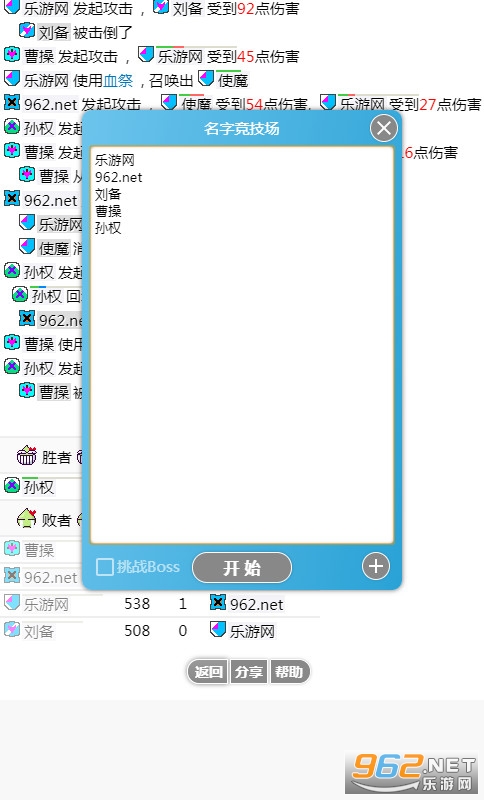 名字竞技场这款小游戏大致内容是在上面输入一堆名字,然后点开始这些人物都会打起来