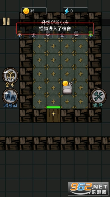 寻找适合自己的宿舍躲避,并发展经济建造炮台,抵御猛鬼;