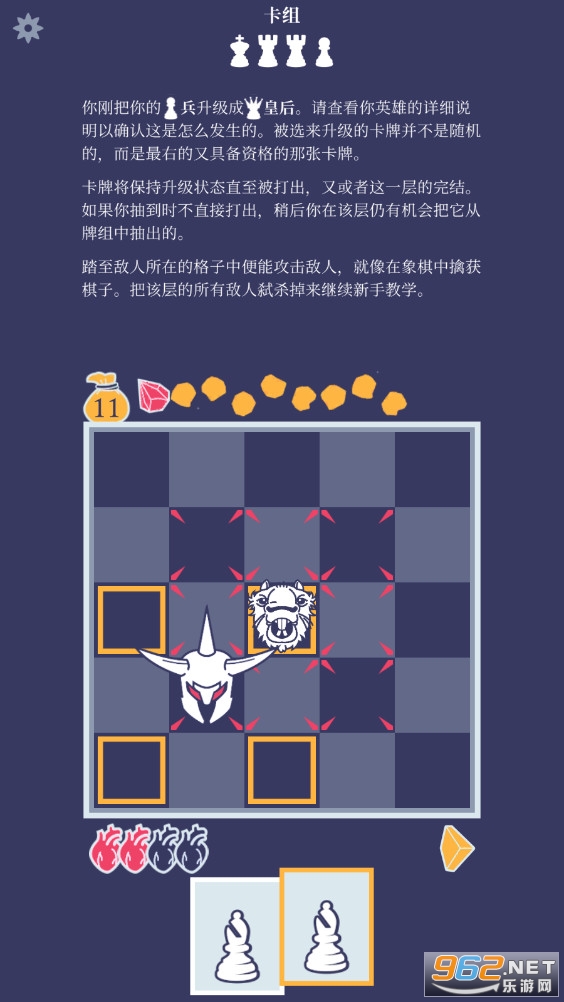 一款有趣的roguelike闯关游戏,在这款游戏中你可以选择不同的角色来进行战斗,不同的棋子有着不同的作用,将国际象棋的玩法结合到策略地下城中,到达棋盘的底边还可以将小卒升级为皇后,推荐给喜欢策略游戏的玩家。