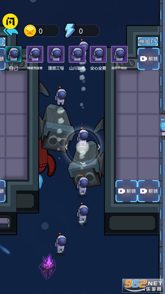 躺平发育的太空杀版本,进入到游戏之后玩家就会化身为太空人在太空里飘着,然后还分为防守阵线和进攻阵线,还有F1到F6的房间选择,整个游戏十分的类似于攻守兼备,整个就是太空+躺平+攻守兼备,而且这个玩法中还能够让玩家在家门口进行陷阱的设置,玩家一边要防御上一个房间的玩家,一边又要进攻下一个房间的玩家,整个游戏的玩法设计的更加的有趣,游戏将各种元素进行口了融合就可以感受到多种不同的玩法,更加的好玩。