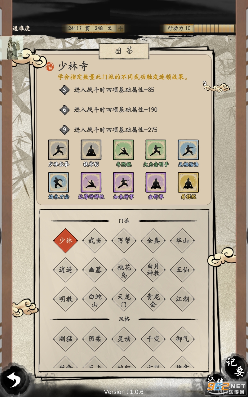 4.门派任务最高贡献:记名弟子20,入门弟子50,入室弟子80,嫡传弟子120,长老180,护法300或450。武当的任务很有意思,是给张三丰准备祝寿礼物,好处是不消耗行动点,坏处是真费钱。每年开始的时候,门派任务是可以刷的,遇不满意的任务时不要接任务,直接结束游戏进程,重开,游戏会回到上一年结束前。
