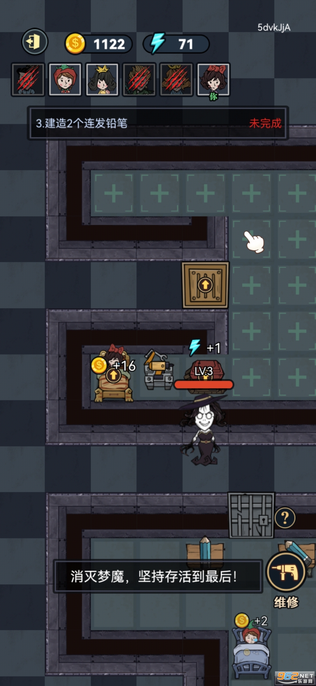 3、门升级技巧:在游戏里面门升级也是有技巧的,因为猛鬼在攻击时候会会降低门的血量,在血量快不足的时候升级门可以将血量瞬间拉满,这样就可以持续抵挡住猛鬼的攻击了,然后继续发展自己的武器;