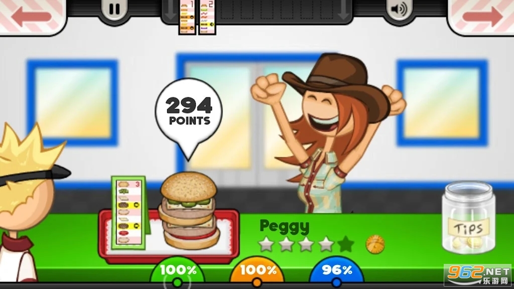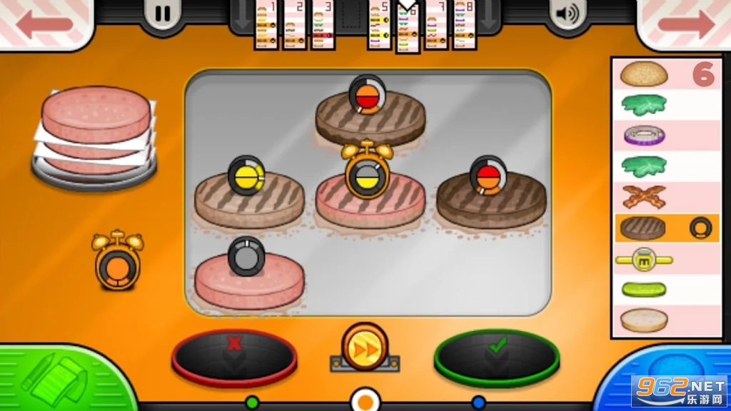 其中你要及时接待顾客,得控制好烤肉的时间和温度,还要做出正确美观的汉堡~