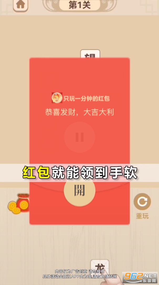《只玩一分钟》是一款填词成语答题游戏,各种成语层出不穷,每一个关卡中的题目都是随机的,增加了趣味和挑战性,答题还可以获得红包奖励,感兴趣的来下载吧。