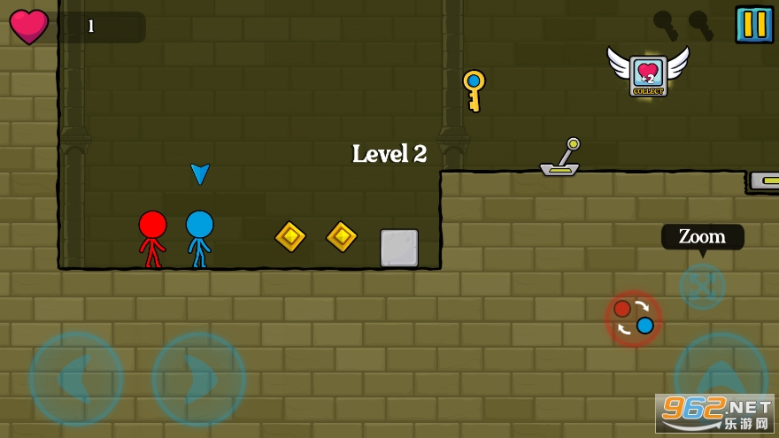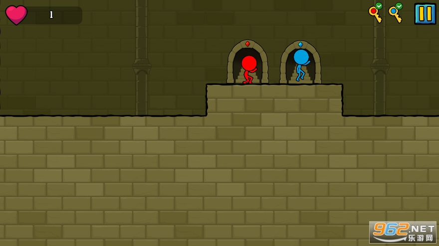 3、竖屏界面单手控制,帮助两个小人一起跑,冒险进度同步不掉队。