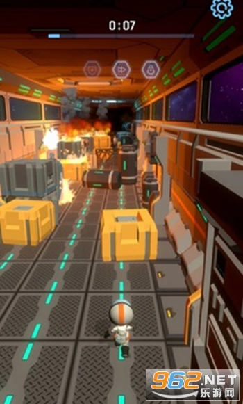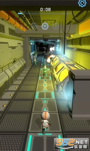 《太空冒险奔跑》是一款画面清新的Q版风格的竖版跑酷手游,游戏的背景设置在一个天空船上,玩家将控制一个宇航员冒险,前方会出现各种破损的飞船道路,敏捷的单机屏幕避开各种危险,注意还有着机器人、战机等各种危险,快速的奔跑躲避敌人。