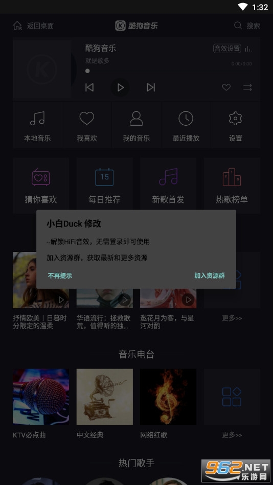 非常不错的音乐播放器软件,有着丰富的音乐资源,可以在线或者离线听歌,小编带来的是修改后的酷狗音乐车机版,无需登录账号即可获得hifi音效,有需要的朋友可以下载试试。