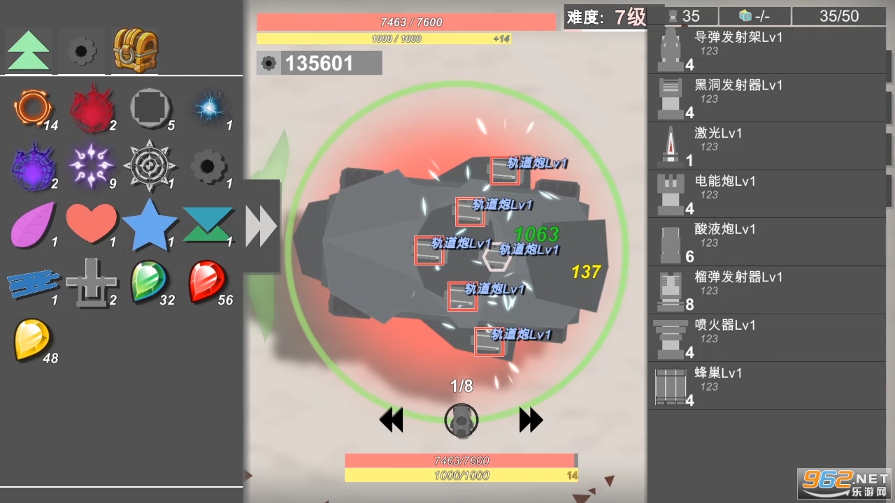 3、采用不同的战术击败敌人,射击外星人,及时更新战车。