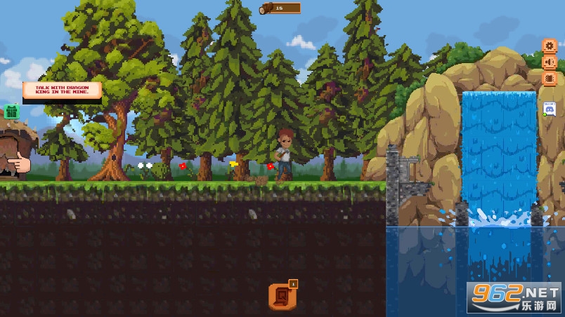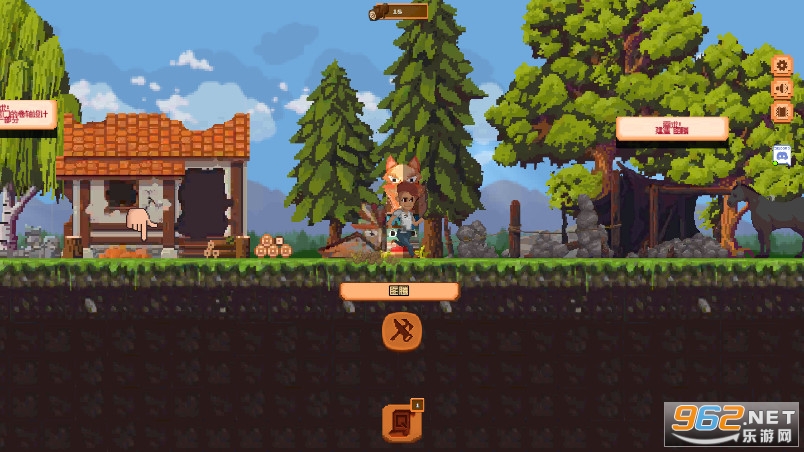 像素冒险游戏,玩家将控制角色前往一个个场景冒险,可以砍伐树木收集木材去建造房屋,建造桥梁了,可以和各种怪物战斗,可以驯服宠物,玩法丰富,喜欢的朋友可以下载试试。