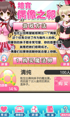 游戏一开始会给玩家提供一个神奇的蛋,从里面会诞生出各种各样的妹子。