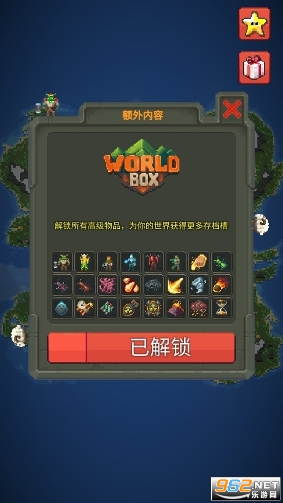 《世界盒子2》是一款像素沙盒模拟游戏,《世界盒子》游戏续作,破解了免费购买,让大家可以在这里,自由想象,制作出狼,精灵,绵羊,兽人各种各样的魔法生物,建造房屋,道路,发展文明,于此同时你可以利用飓风,龙卷风,火山喷发等自然灾害去破坏这里的一切,继续体验作为上帝的乐趣!