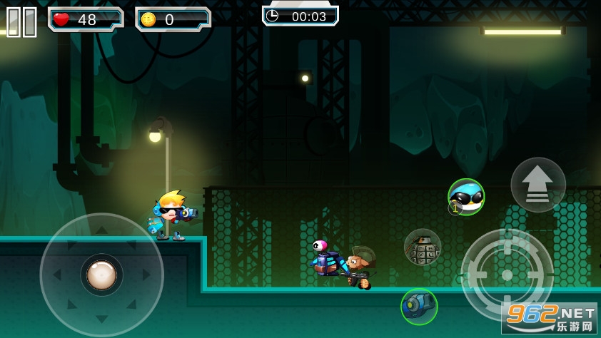 这款游戏还是蛮不错的,挺好玩的,游戏画风属于横版射击类型游戏,简单的操作,加上刺激的射击战斗感觉,非常棒,玩起来很爽很刺激!在游戏中我们需要控制全副武装的金属英雄孤身闯入邪恶组织的基地,然后依靠灵活走位避开各种攻击和火力全开消灭所有拦路的敌人,最后突破重重关卡,打败最终boss,保卫世界的和平。