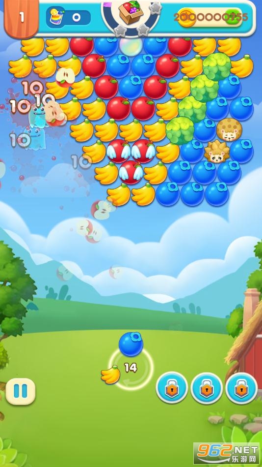 开始冒险旅程:完成泡泡龙关卡,经营属于自己的水果农场。