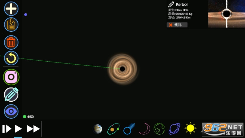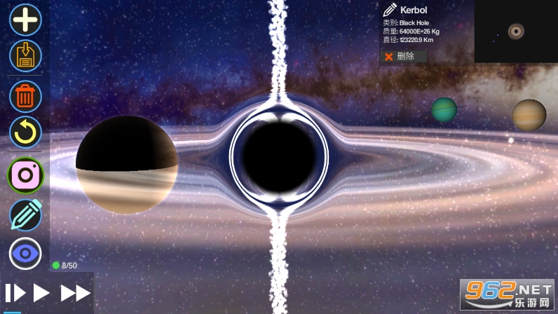 在游戏里你可以创造自己的太阳系。小行星、行星、恒星甚至是黑洞都能信手拈来,可以实时观察它们的相互作用和运转轨迹。