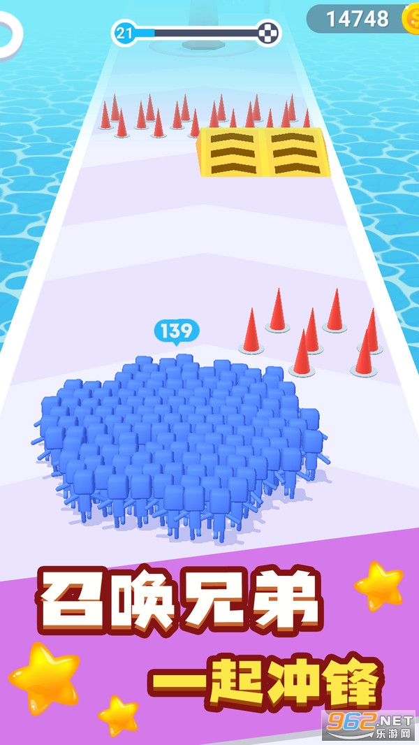 荣耀火柴人是一款休闲竞技游戏。游戏延续io竞技规则,玩家需要控制自己的人群向前冲,同时扩大自己的队伍,击败途中的对手,带领兄弟们赢得这场竞速比赛,到达终点。快节奏游戏体验,惊险刺激。