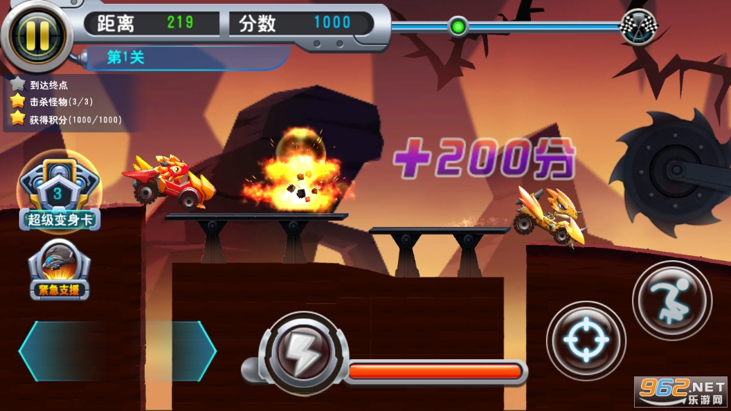2.各种攻击道具,多样的车辆选择,原版授权的任务角色,还有华丽的变身系统;