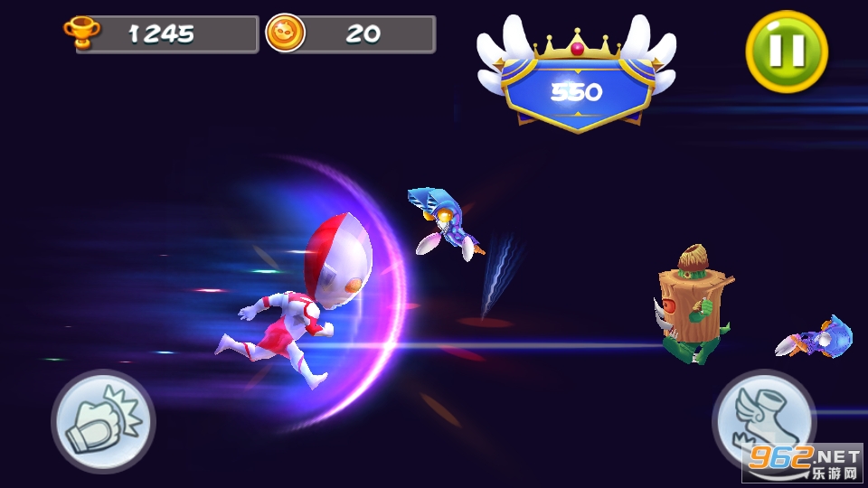 只需动动手指头,便能在城市中灵活穿梭,消灭凶残的怪兽。必杀一击,能量盾,为你对付难缠的怪兽提供坚实的后盾。吸铁石,双倍金币,让你成为收集达人,收集金币跟宝石,召唤更强大的奥特曼!举起双手,成为光之巨人,在空中翱翔吧!