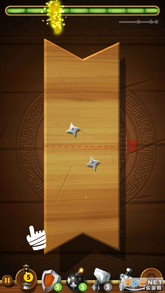 5.在一块木板上飘飞着几枚飞镖,玩家要做的就是通过手指划动,切掉一块块木板。