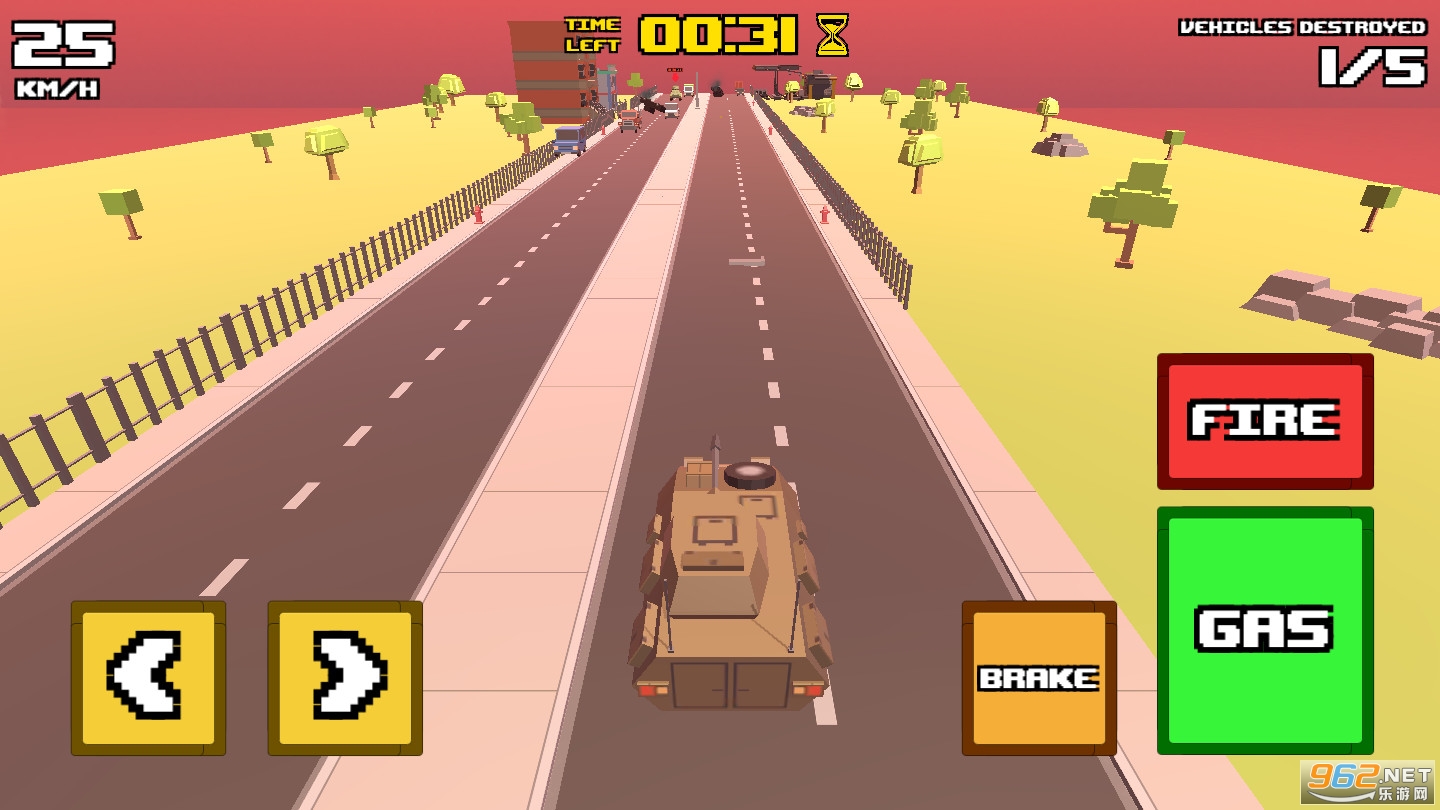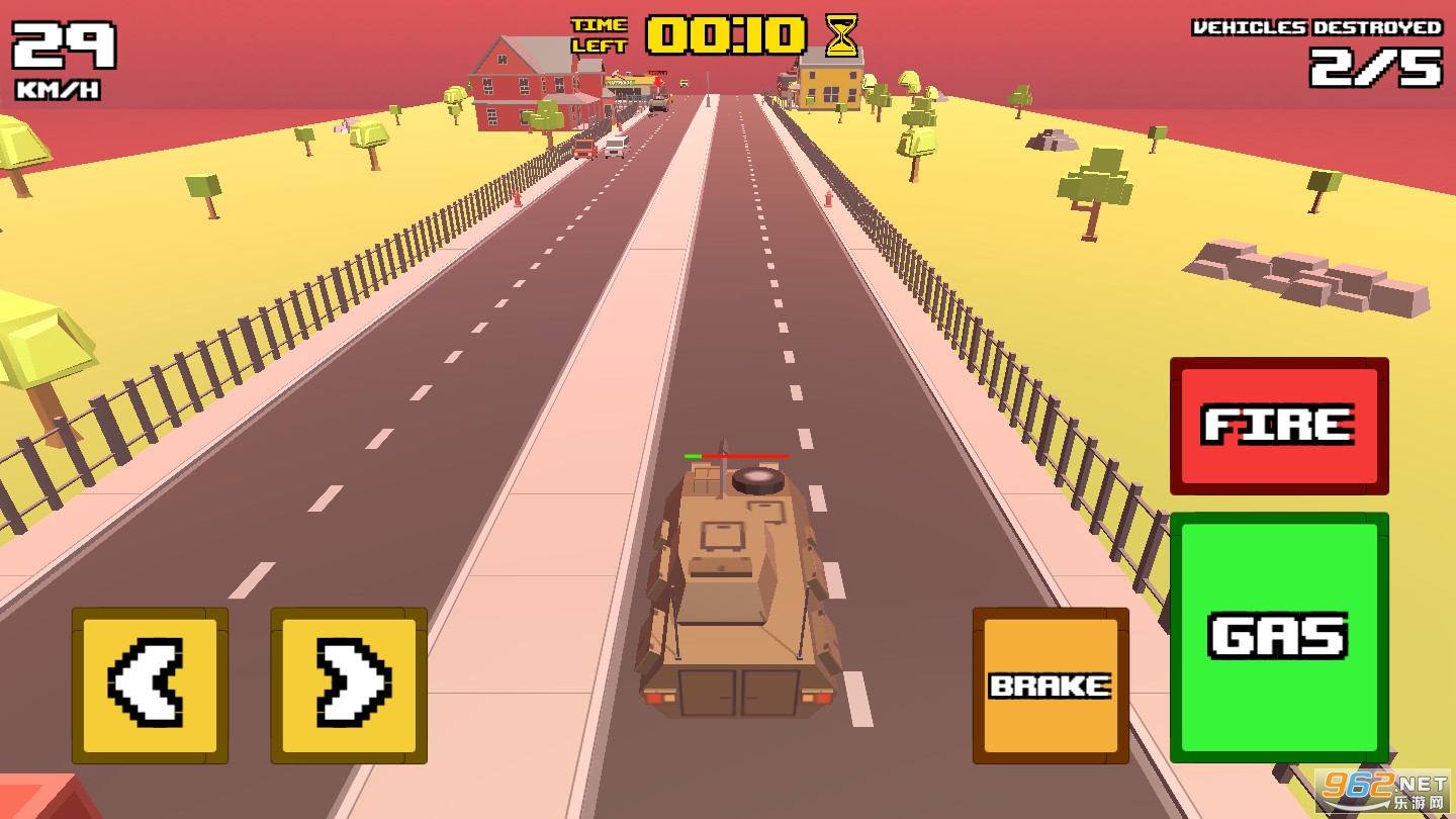 《疯狂的道路坦克横撞》是一款低模卡通风格的坦克闯关游戏,在这款游戏中你将驾驶坦克在城市的街道上和敌人进行战斗,灵活的驾驶坦克进行移动,还可以将各种汽车直接撞飞,解锁更多型号的坦克,享受爽快的撞击。