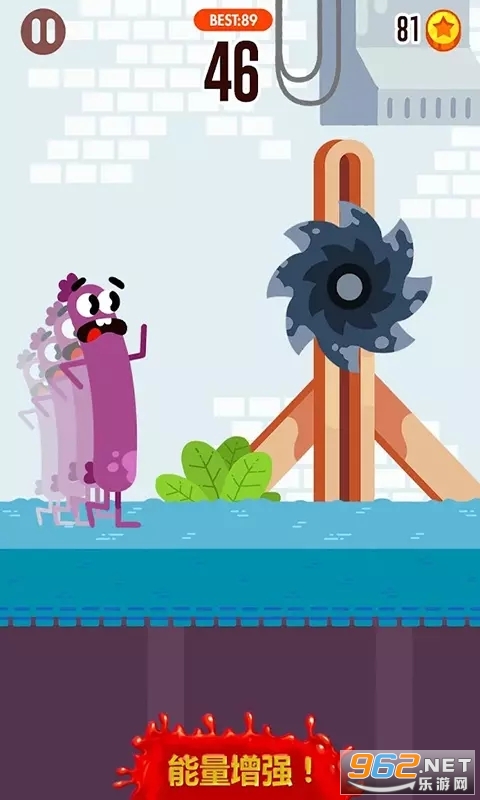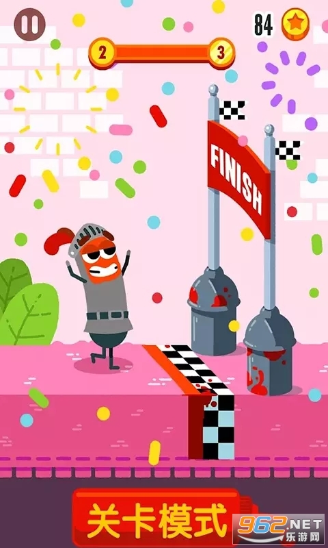 简洁的游戏画面卡通的游戏风格,玩家操作着香肠人不断的进行闯关;