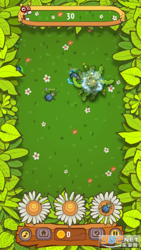 《虫族the bugs》以虫子作为你的武器,在花园内不断的放置和养成更多品种的虫子,在花园内的花朵还未完成盛开之时,将虫族现有的虫子放置入其中,使得它们在吞食的过程中快速的成长起来,吞噬的花朵数量越多,相应的虫子的体积、攻击力和速度也会更加强大。