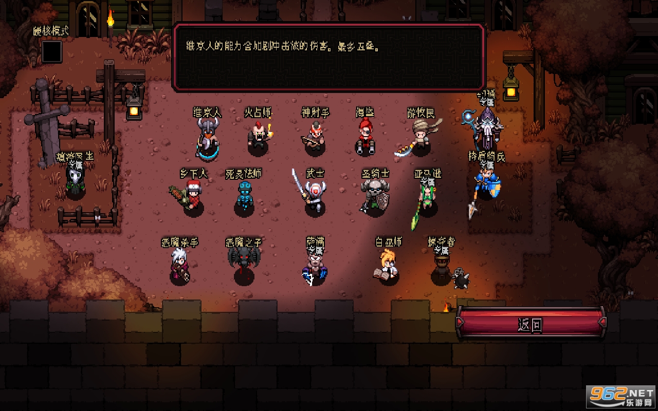 是一款像素化的生存类围城游戏。游戏初始的时候,玩家会在火炉旁选取英雄,这个场景不禁让人想起了暗黑破坏神中也有类似的场景。
