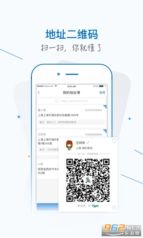 地址薄保存的地址可以转化为二维码 ,扫一扫即可轻松寄件。