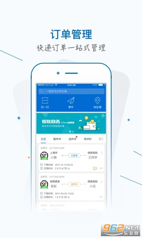银商小跟班是银联商务股份有限公司旗下的寄快递、查快递及物流资源整合服务平台,通过该应用,用户可以轻松寄件,随时随地查询物流状态。