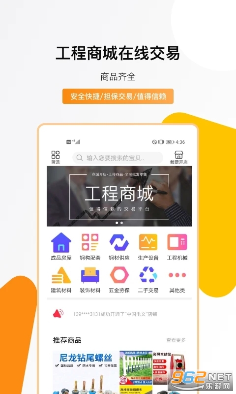4、工程商城包含全产业链商品,多图浏览安全快捷,指尖滑动让您随心所欲购宝贝。