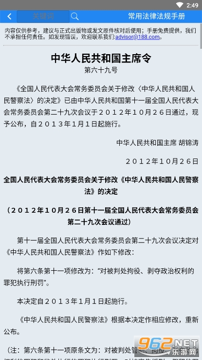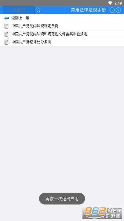 为大家提供常用法律法规手册手机下载,里面拥有国内常用的各类法律法规,大家可以随时随地搜索,查询相应的文件,免费浏览,操作简单,方便!