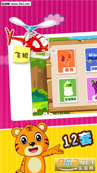 APP以趣味问答的形式,提高宝宝对动物、水果、蔬菜、国旗、交通工作、身体部位、生活用品、家用电器等多种常见主题的认知能力!