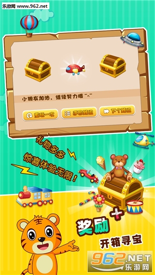 海量的题库,包含动物、水果、蔬菜、国旗、交通工作、身体部位、生活用品、家用电器等多种知识主题;通过趣味的问答方式,让宝宝逐渐掌握。还有礼物图鉴玩法,答题正确可以获得奖励,激发宝宝的学习兴趣!