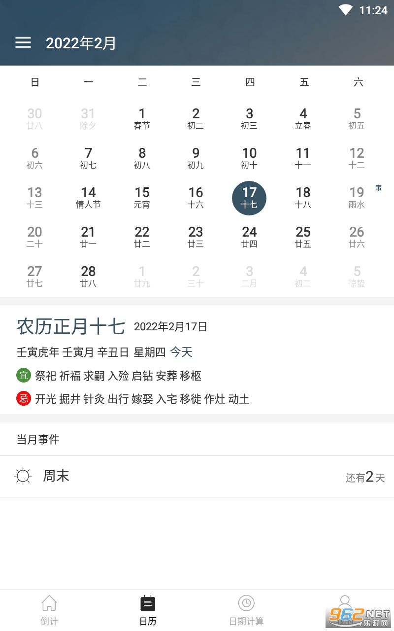 4.万年历查看,日历/黄历视图一览无余,可在日历上查看当天事件,黄历可以查看当天宜、忌、财神方位、时辰宜忌等功能。