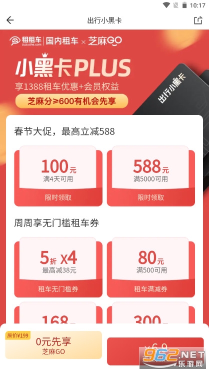 【必抢】出行小黑卡重磅升级,0元先享超千元租车优惠