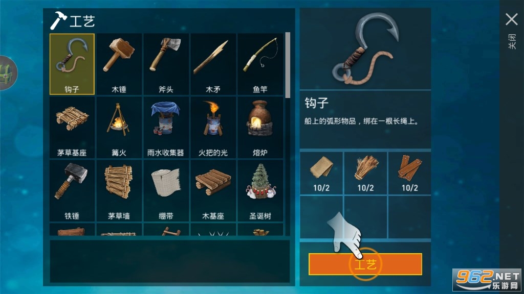 1.开局时用钩子收集资源,注意不要漏木桶,勾不到就下水捞,先造杯子和煮水器,然后造炉子和鱼竿