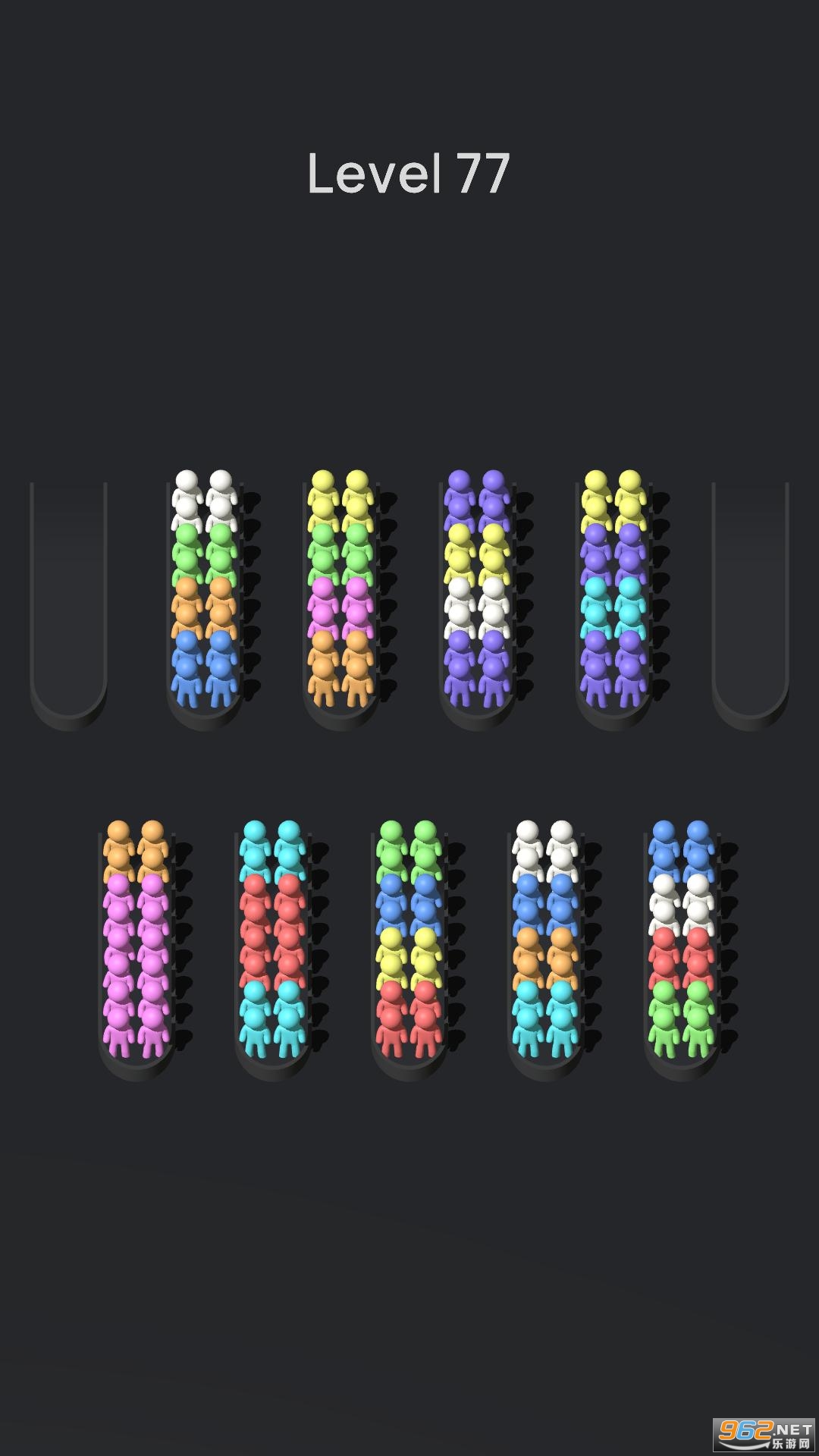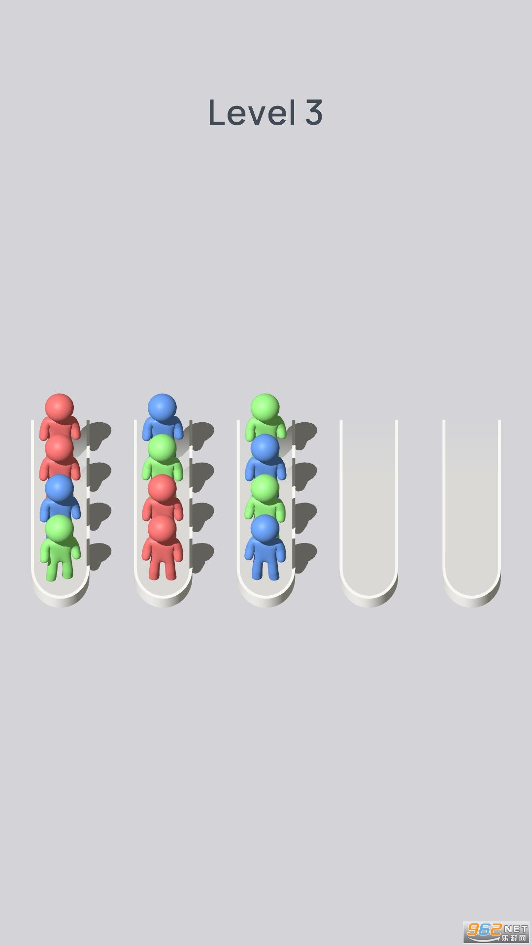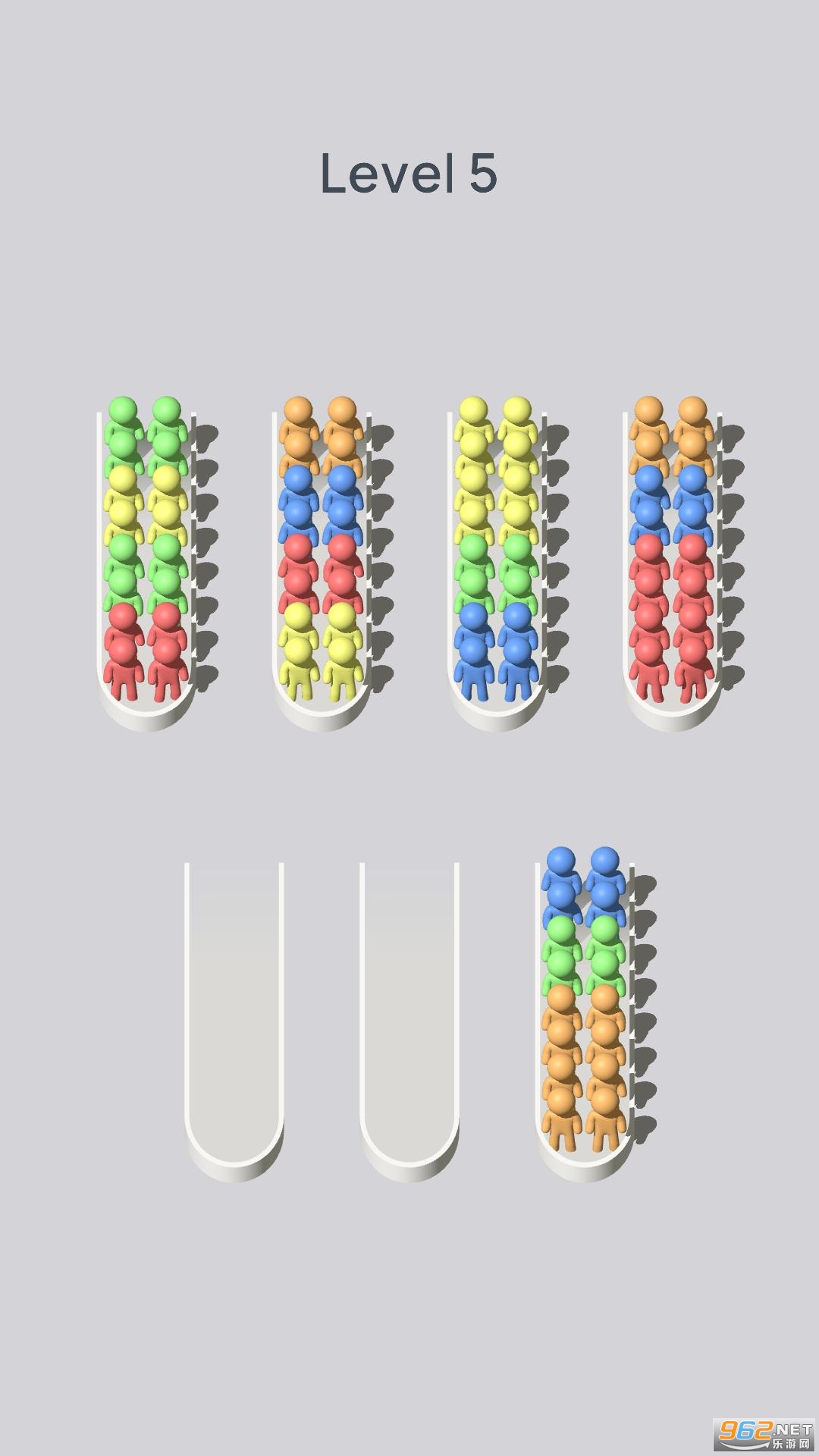 《人群配对:色彩分类与填充crowd sort》是一款好玩的益智游戏,富有挑战性,玩家要尝试将相同颜色的人群分配到同一个颜色的管子里,可以撤销前面的步骤,感兴趣的来下载吧。
