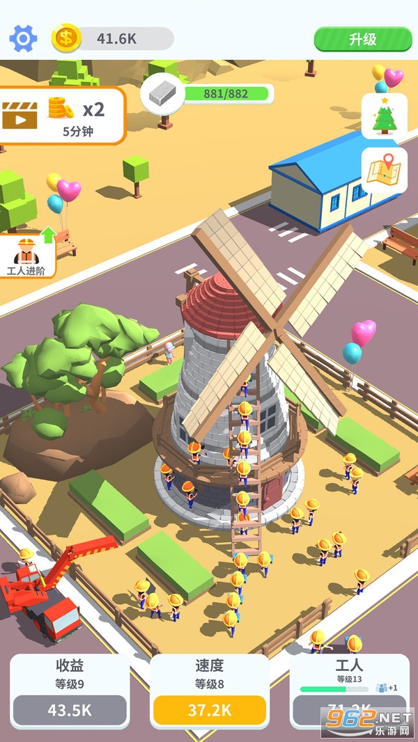 只需打开游戏,建筑就开始了。利用闲置时间点击游戏,就可赚取更多的金币; 升级扩大收益,增加工人数量及速度,来扩大你的建筑区域。 超人协助建筑,极速搬砖,道具空投等,还有更多道具等你发现。 为你打发无聊的碎片化时间。