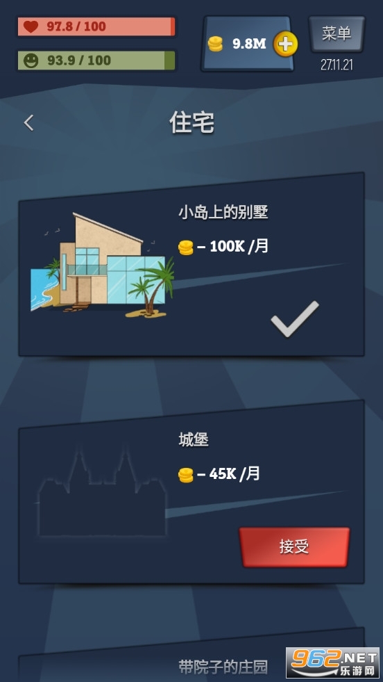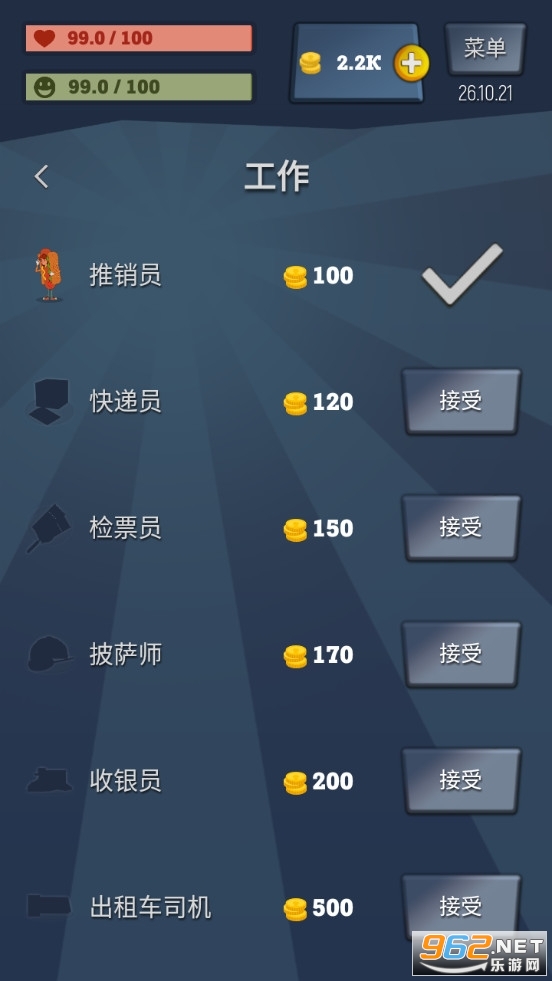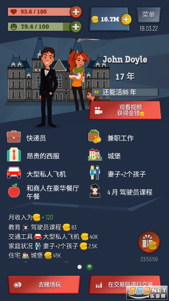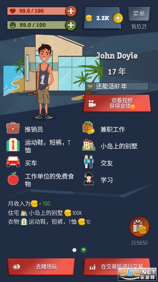 《从贫民到大亨》是一款画面精致的模拟经营游戏,在这里你将模拟一个人的一生,可以去找一份工作,比如快递员、收银员、出租车司机等,可以去租房子,当然也有着很多种选择,还可以去买衣服,买汽车等,注意观察角色的健康和精神值,可以去散步、聚餐、运动来提高数值。